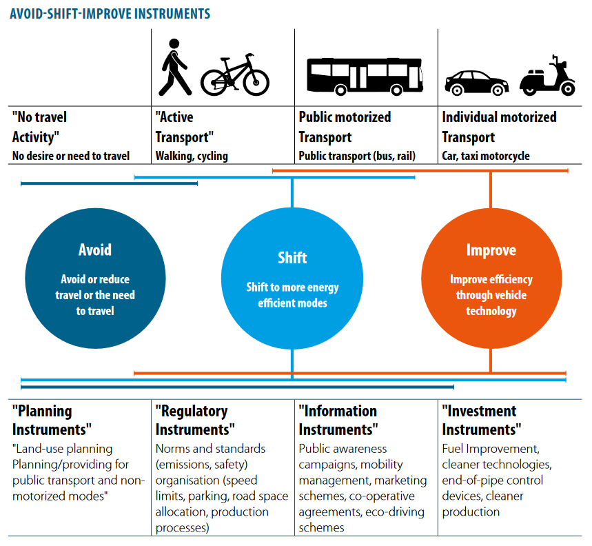 Přístup „Avoid–Shift–Improve“ popisuje ve své odborné publikaci THE PEP Transport, Health and Environment (společný projekt Evropské hospodářské komise OSN a Světové zdravot­nické organizace).