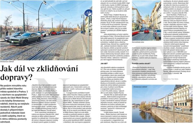 Časopis JEDNA, zpravodajsko-publicistický magazín Prahy 1, který vyšel 1. 4. 2024, zveřejnil na str. 8–9 článek „Jak dál ve zklidňování dopravy?“. Je dostupný z: