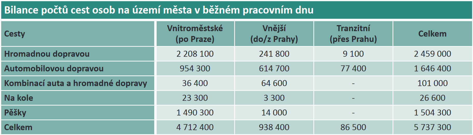 Podle ročenky TSK (2016) podíl tranzitních cest na celkovém objemu cest automobilovou dopravou v Praze činí pouhých 4,7 % (viz tabulka níže).
