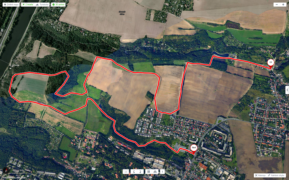 (2) Trasa procházky při pohledu z letadla << zvětšit >> Klepněte na mapu a uvidíte trasu procházky na výkresu dálnice.