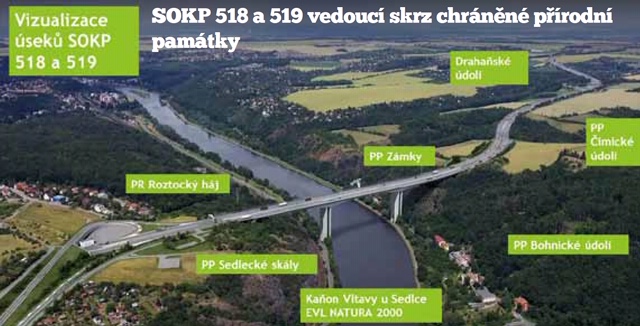A kupodivu je to také prostor, kudy má vést šestiproudá evropská dálnice, tedy „obchvat“ Prahy, úsek 519 a 518. Chtěla bych věřit, že projektanti a politici, kteří prosazují tuto trasu, jsou jenom neobeznámeni s důležitostí a významem tohoto prostoru.