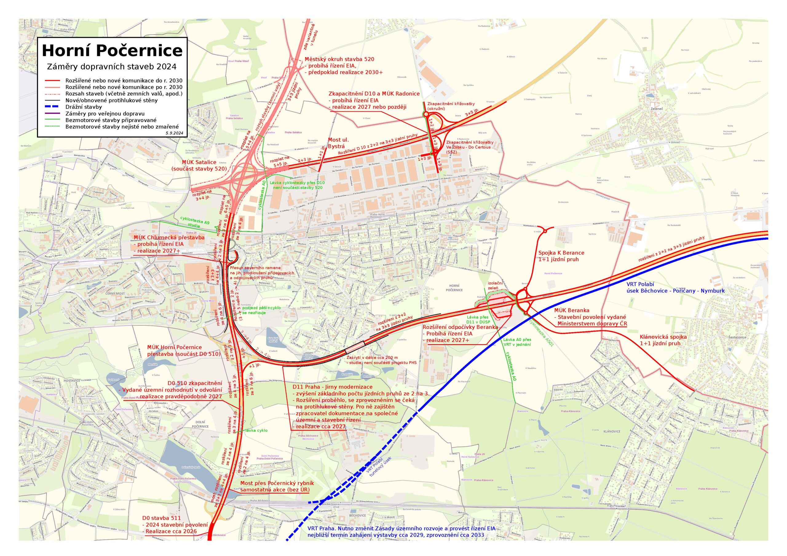 Záměry dopravních staveb u Horních Počernic (2024)