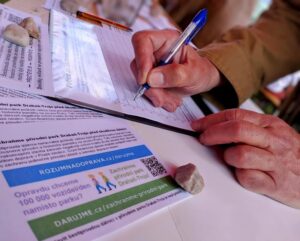 Účastníci podepisovali papírovou petici Za záchranu přírodního parku Drahaň-Troja